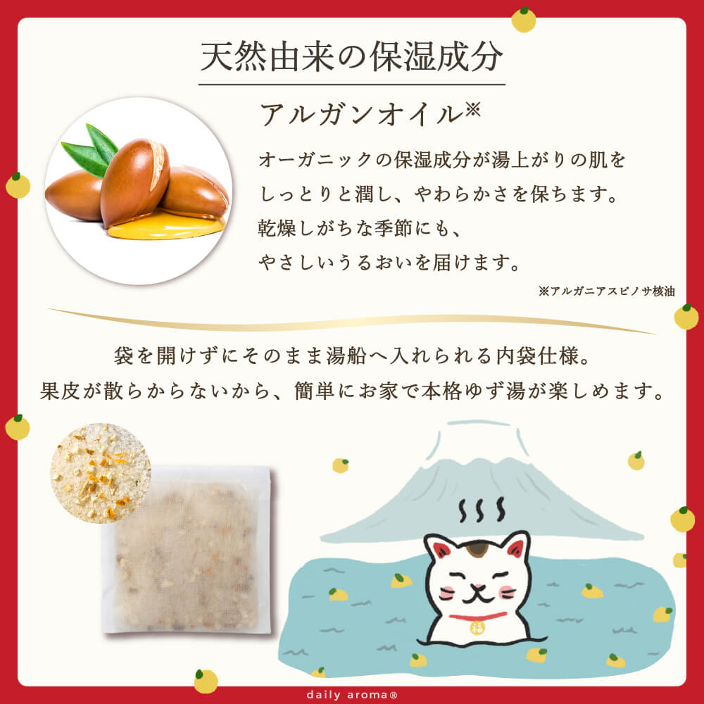 幸運を招く「招き猫」と縁起のよいユズの香りで心も身体も満たされる、天然ユズ精油100%のみずみずしく爽やかな香りが広がる入浴剤です。4種の美肌成分*で肌しっとり、おみくじ付きで心までほころぶバスタイム。