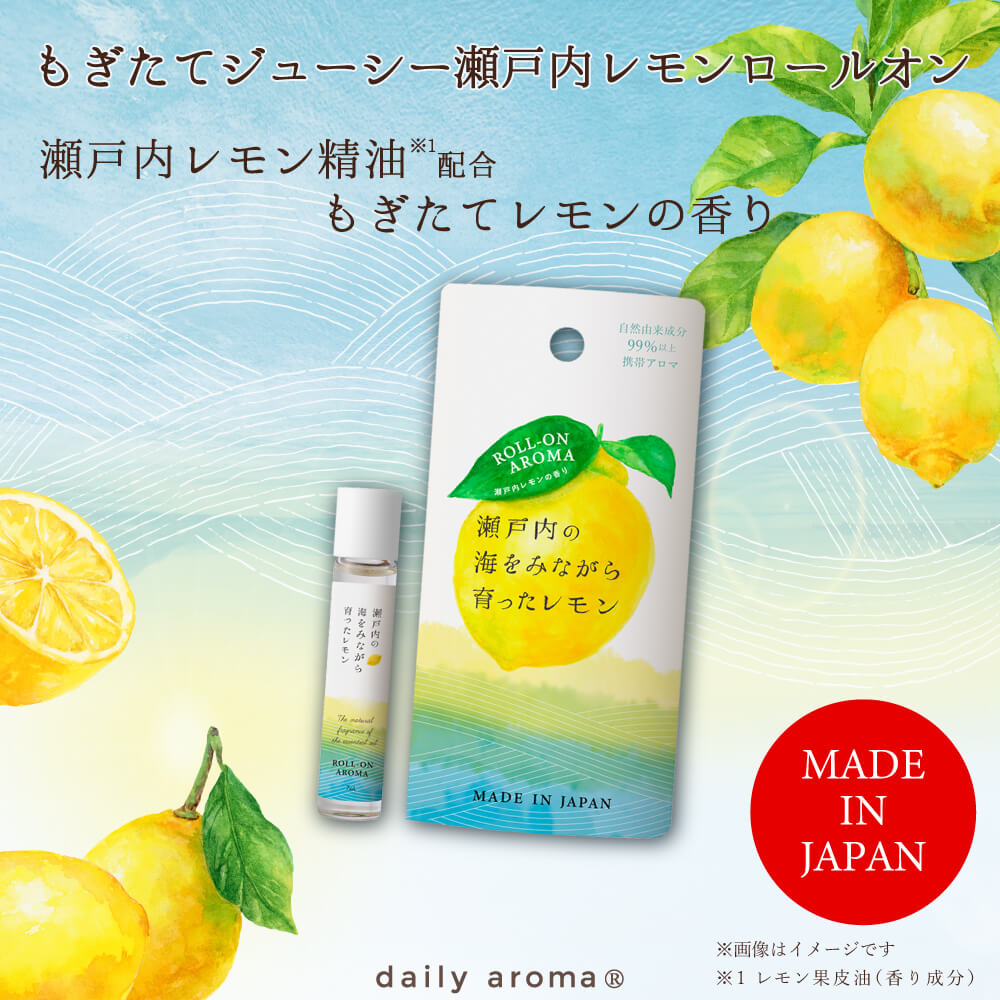 瀬戸内レモン精油を配合した爽やかな香りのロールオンアロマ。